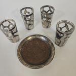 Lot 167L: Vintage Aztec Trinket Dish With Sterling Silver Rim And Set Of 4 Mexic (6 photos)