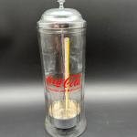 Vintage Coca-Cola soda fountain straw dispenser jar featuring the classic… Read More →