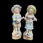 Antique Victorian Bisque Figurines Boy & Girl Pair Hand Painted Porcelain C. Lat (8 photos)