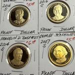 Lot Of 4 Golden Proof Presidential Dollars Group-6 As Pictured, (1 photo)