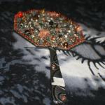 Octagon Mirror With Orange Beading Around Edge Wth Silver Beading And Jewelry (2 photos)