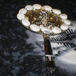 Round Mirror With White Stone Edging And A Variety Of Jewelry (2 photos)