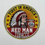 Vintage Red Man Tobacco advertising sign featuring the classic “First In… Read More →