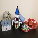 Lot 115P: Stained Glass Church Lamp With Collection Of Miniature Houses & Glass (19 photos)