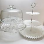 Lot 78K: Fenton Silver Crest 3-Tier Tidbit Tray, Covered Glass Cake Stand & Pede (18 photos)