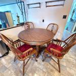 Lot 148K: Heavy Circular Wood Dining Table W/ Pads & Four Chairs (12 photos)