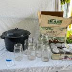 large canning enamel pot with jar lifter. Quart jars, Kerr, and Ball, pint jam… Read More →