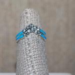 Size 6½ "V" Style 2-Rings Stackable Set With 5 Clear Round Stones And Baby Blue (5 photos)
