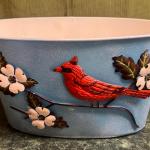 Decorative metal tub featuring a bright red cardinal on a dogwood branch with… Read More →