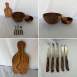 Lot includes two wooden bowls, wooden cutting board and five Rurik cheese… Read More →