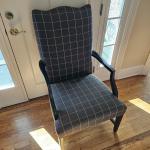 Black wood frame and gray square fabric on this solid side chair by Ethan Allen.… Read More →