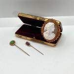 Lot 261: Vintage Stick / Hat Pins, Cameo Brooch And Gillette Box (26 photos)