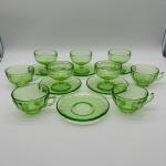 Vintage Uranium Glass Dessert Set – Green Depression Glass Cups & Saucers – (23 photos)