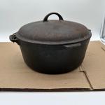 Vintage Griswold No. 10 cast iron Dutch oven with matching lid, marked “The… Read More →