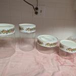 PYREX ware, glass screw on lids. Can be used as canister set.… Read More →