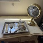 This lot contains a small vanity set. Included is a Conair gold toned lighted… Read More →