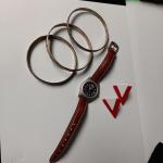 3 Silver Tone Bracelets, Wenger Watch, Earrings And Button Covers (9 photos)