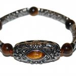 Beautiful "Tiger-Eye" Style Stretch Bracelet (2¼" Opening) With Silver Tone Bar (2 photos)