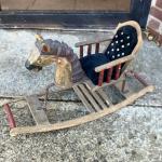 Vintage Hand-Painted Wooden Rocking Horse For Dolls & Teddy Bears - Primitive Fo (8 photos)