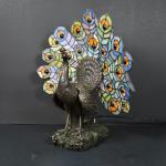 Lot 158: Tiffany-Style Stained Glass Peacock Lamp (12 photos)