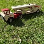 Vintage Mighty Tonka car carrier truck with matching trailer in classic cream… Read More →