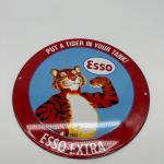 Porcelain-style Esso Extra advertising sign featuring the classic “Put a Tiger… Read More →