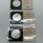 Lot of three American Silver Eagle one dollar coins including one 2002 and two… Read More →