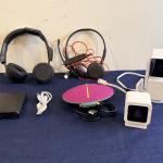 Tech Accessories Lot – Plantronics Headsets, Anker Power Bank, Speakers & Came (9 photos)