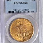 1926 $20 Saint-Gaudens Gold Double Eagle – PCGS MS65