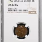 1955 Lincoln Wheat Cent – Doubled Die Obverse – NGC MS62 BN