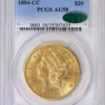 1884-CC $20 US Gold Double Eagle Liberty Head – PCGS AU58 CAC – Carson City