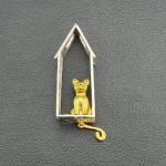 Cat Pendant Brand New Solid 925 Sterling Silver Stamped Gold Electroplated (7 photos)