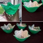 Four stunning vibrant green glass bowls with swirling white interiors. No… Read More →