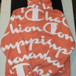 Champion Reverse Weave Sweatshirt Mens Size L Large All Over Print Spellout Hood (3 photos)