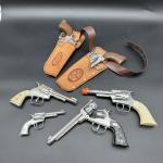Mixed vintage toy cap gun lot including several die-cast cowboy style revolvers… Read More →