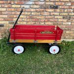 Classic Radio Flyer Town & Country wooden wagon with red painted side rails… Read More →