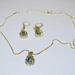 Gold Colored Chain & Blue Necklace / Pendant Combo (18" L + Pear Shaped Stone + (4 photos)