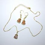 Gold Colored Chain & Pink Necklace / Pendant Combo (18" L + Pear Shaped Stone + (3 photos)