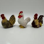 Set of three rooster figurines including two hand-carved wooden chickens and one… Read More →
