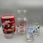 Lot 1 : Vintage Snoopy Peanuts Glassware Lot – 4 Pieces – Glasses & Carafe ? (16 photos)