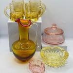 Lot 33K: Amberina Mini Blown Glass Pitcher, Four Amber/Yellow Mugs, Tiny Pink Gl (11 photos)