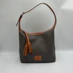 Dooney & Bourke pebbled leather shoulder bag featuring brown leather trim,… Read More →