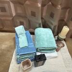 Bathroom Items, Shower Curtain, Rug, Soap Dispenser And Matching Cup And More (8 photos)