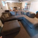 Klaussner brand sectional couch with ottoman. Material is a greyish tan… Read More →