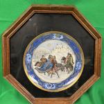 An octagonal wooden frame encasing a decorative plate featuring a detailed scene… Read More →