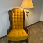 Retro Gold Tufted Chair And Accompanying Floor Lamp (10 photos)