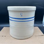 Antique 5 Gallon Salt Glazed Stoneware Crock W/ Double Blue Band – Primitive S (17 photos)