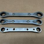 Set of (3) genuine Snap-On double box-end ratcheting wrenches, made in USA.… Read More →