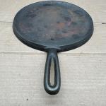 Vintage cast iron #8 flat griddle with integrated handle. Classic round design… Read More →