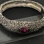 Silver Pebble Purple Glass Hinged Bracelet (4 photos)